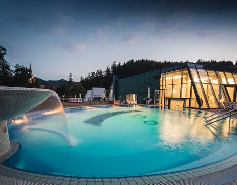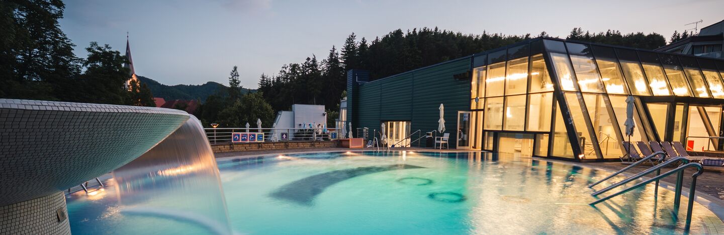 Tauchen Sie ein in das heilende Thermalwasser, das mit seiner reichen Mineralzusammensetzung schon seit 1403 eine Quelle der Gesundheit und Vitalität ist. Im Schwimmbadkomplex befinden sich Innen- und Außenschwimmbecken, ein Whirlpool, eine Terrasse zum Sonnenbaden sowie eine Bar mit Speisen- und Getränkeangebot.