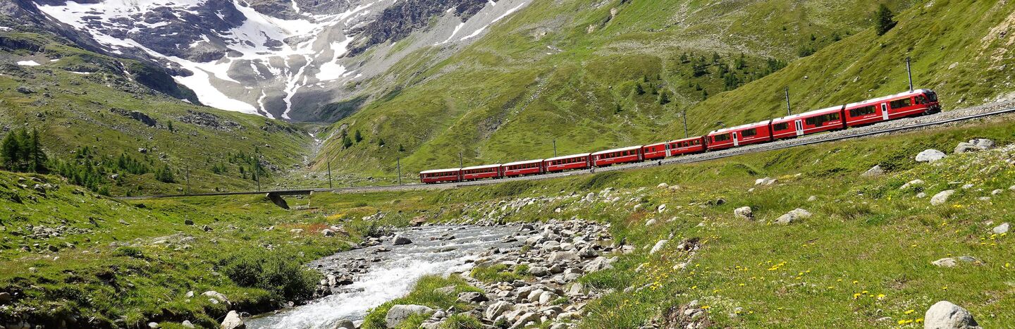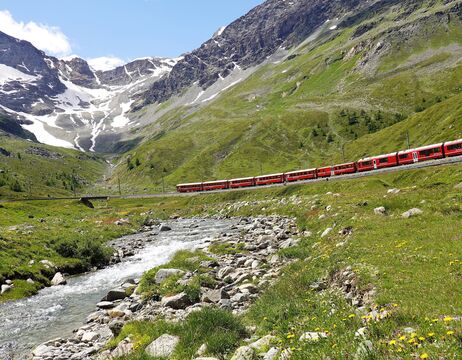 Im Panoramawagen des „Bernina Express“ genießen Sie die Bahnstrecke, welche zum UNESCO-Welterbe gehört und als technische Meisterleistung gilt. Vorbei am Morteratschgletscher, dem Piz Palü, der Diavolezza und dann hinunter ins Val Poschiavo, heißt die Endstation heute Tirano. Viele Fotomotive, malerische Dörfer und die teilweise noch unberührte Natur werden Sie den Tag über begleiten. Rückfahrt im Bus über St. Moritz und den Julierpass.