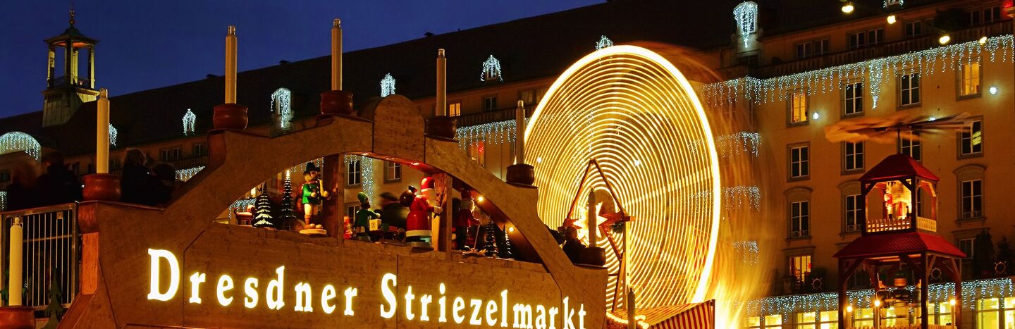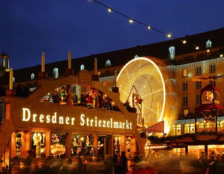Nicht nur die Stadt Dresden, der Striezelmarkt und eine Vielzahl weiterer Adventsmärkte werden Sie begeistern. Auf einem geführten Stadtrundgang zum Thema „Funkelndes Dresden“ lernen Sie die Stadt kennen. Einer der ältesten und bekanntesten Weihnachtsmärkte Deutschlands ist der Dresdner Striezelmarkt. Der Markt ist berühmt für seine festliche Dekoration, die traditionellen handwerklichen Produkte und vor allem für den Dresdner Christstollen, auch Striezel genannt, der hier seinen Ursprung hat.