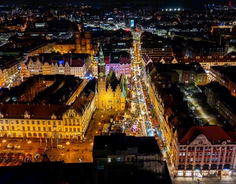 Heute entdecken Sie Breslau bei einer geführten Stadtbesichtigung. Bewundern Sie die prachtvollen Bürgerhäuser am Marktplatz, die beeindruckende Jahrhunderthalle und die malerische Dominsel. Am Nachmittag haben Sie Zeit für den Adventmarkt – schlendern Sie gemütlich durch die festlich geschmückten Straßen oder genießen Sie die besinnliche Stimmung auf dem Weihnachtsmarkt. Der Duft von Glühwein, gebrannten Mandeln und polnischen Spezialitäten begleitet Sie dabei. Für den Abend haben wir Plätze für Sie in einem Restaurant im Bereich der Altstadt ausgewählt.